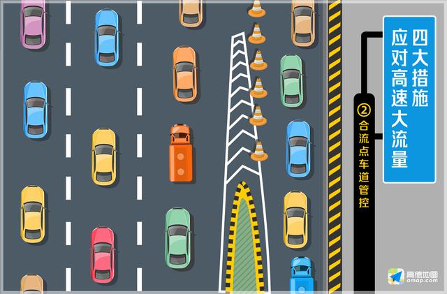 分析入口合流點交通沖突并提前管控、規(guī)范合流行為。大流量交通運行狀態(tài)時,高速公路入口合流點車輛交織,擁堵、碰撞事故概率增加。通過管控系統(tǒng)平臺形成系統(tǒng)的控制策略,綜合動態(tài)限速控制、車道合流路徑控制,結(jié)合路上錐桶等交通控制設(shè)施延長合流過程,減少交通沖突,緩解擁堵。